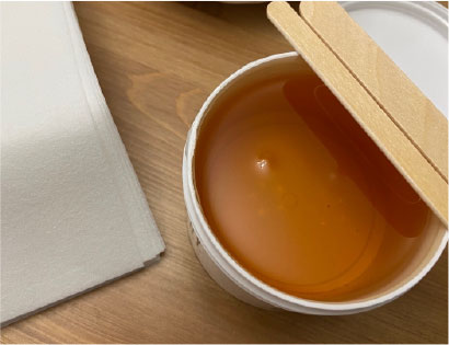 綺麗でしっかりとしたワックス脱毛を行うため、専用の保湿ジェルを使いお肌を保護しながら毛穴を広げます。