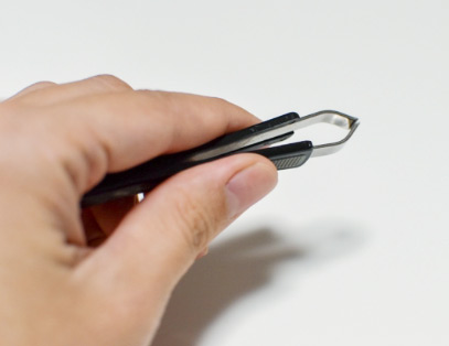 ワックスでは取り除けなかった細かな毛をハサミや毛抜きを使って、一本一本除去します。
